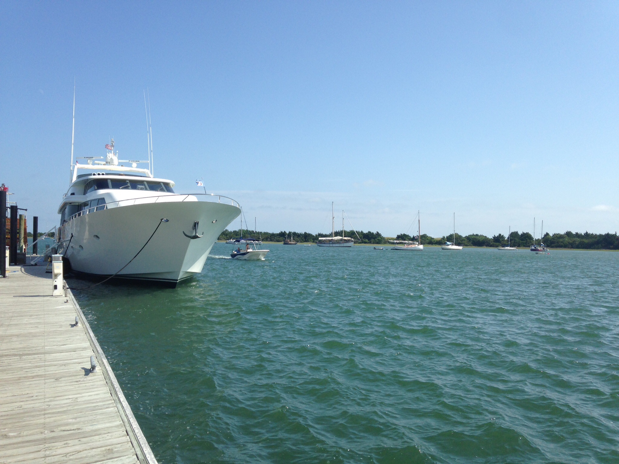 Pulled into Beaufort Docks yesterday. Arrived a little early than we planned so the current was still running swiftly. Not too much problem getting into the slip though, but definitely a spirited docking exercise! They have excellent dock hands here 🙂
