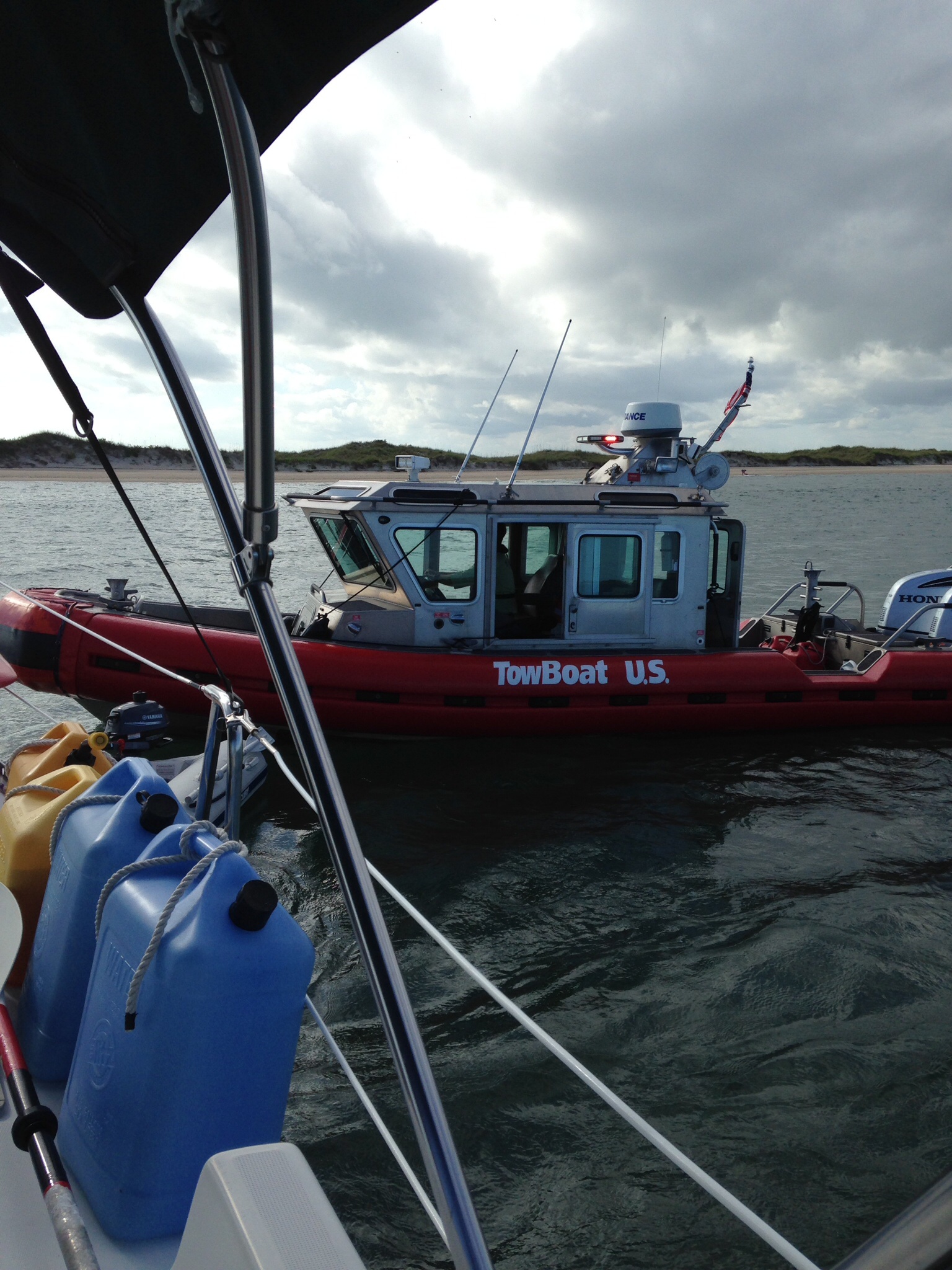 Crazy wicked currents, mixed with opposing wind direction had our keel wrapped twice. First was at 5:30 a.m. Which we were able to unwrap ourself after waiting for sunrise and slack tide. The second was a little more complicated later that day. Since we have a bulb keel, the anchor rode did a double wrap on the tail of the bulb. Due to the double wrap on the bulb, the use of the dinghy to spin the boat around in the current, failed. After numerous dive attempts by the captain, we called Tow Boat US (thankfully, our towing insurance covered the cost for their help). Some keel damage that we can tell, but will have to wait for a haul out to know the full extent. Not a show stopper though. Time to buy a sentinel for the anchor!
