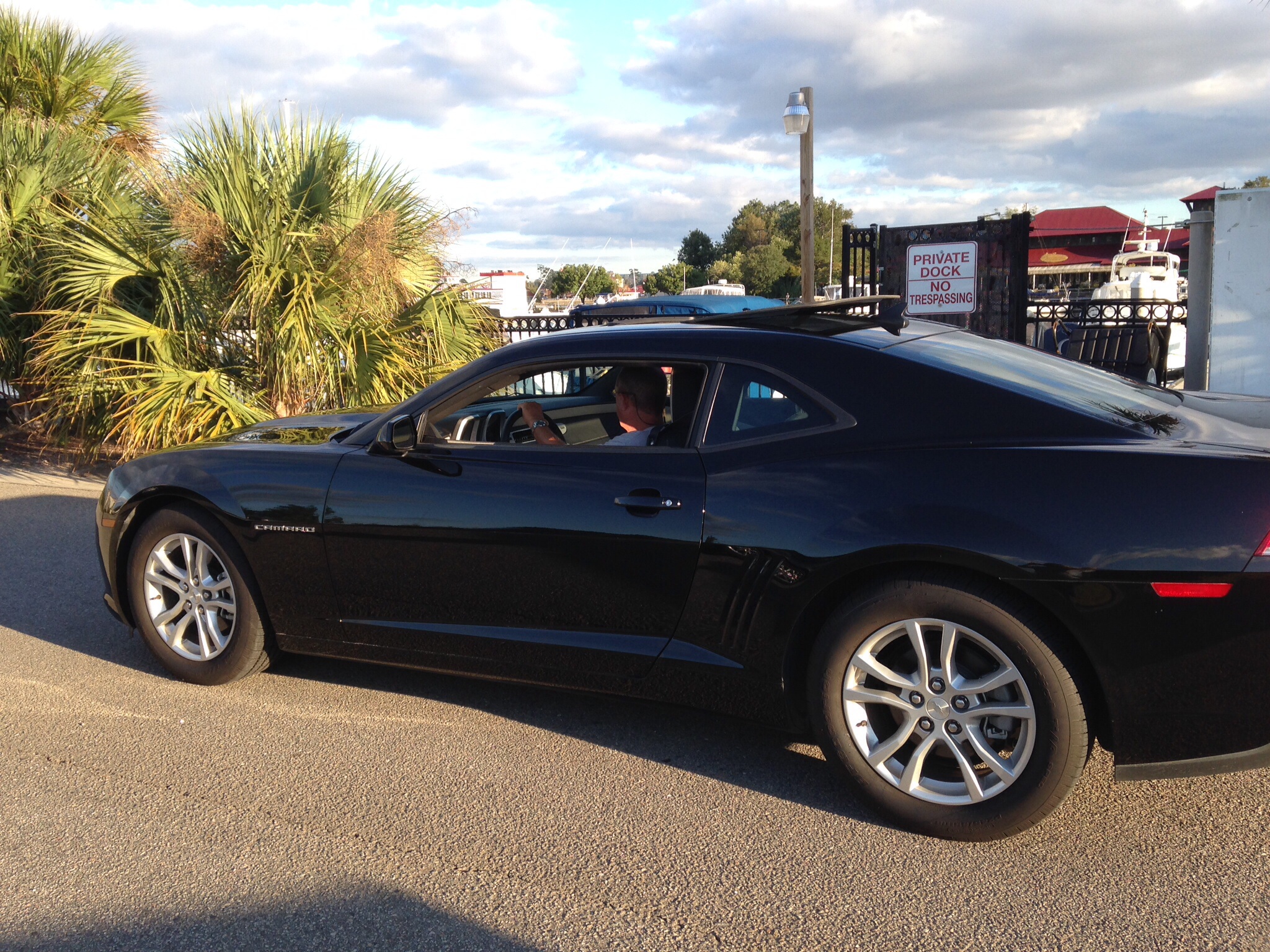 Rented a car, bad-ass (ha ha) black camaro (with paddle shifters says captain Howard). I think I heard some mention of having to buy new tires, and there was a burnt rubber smell.