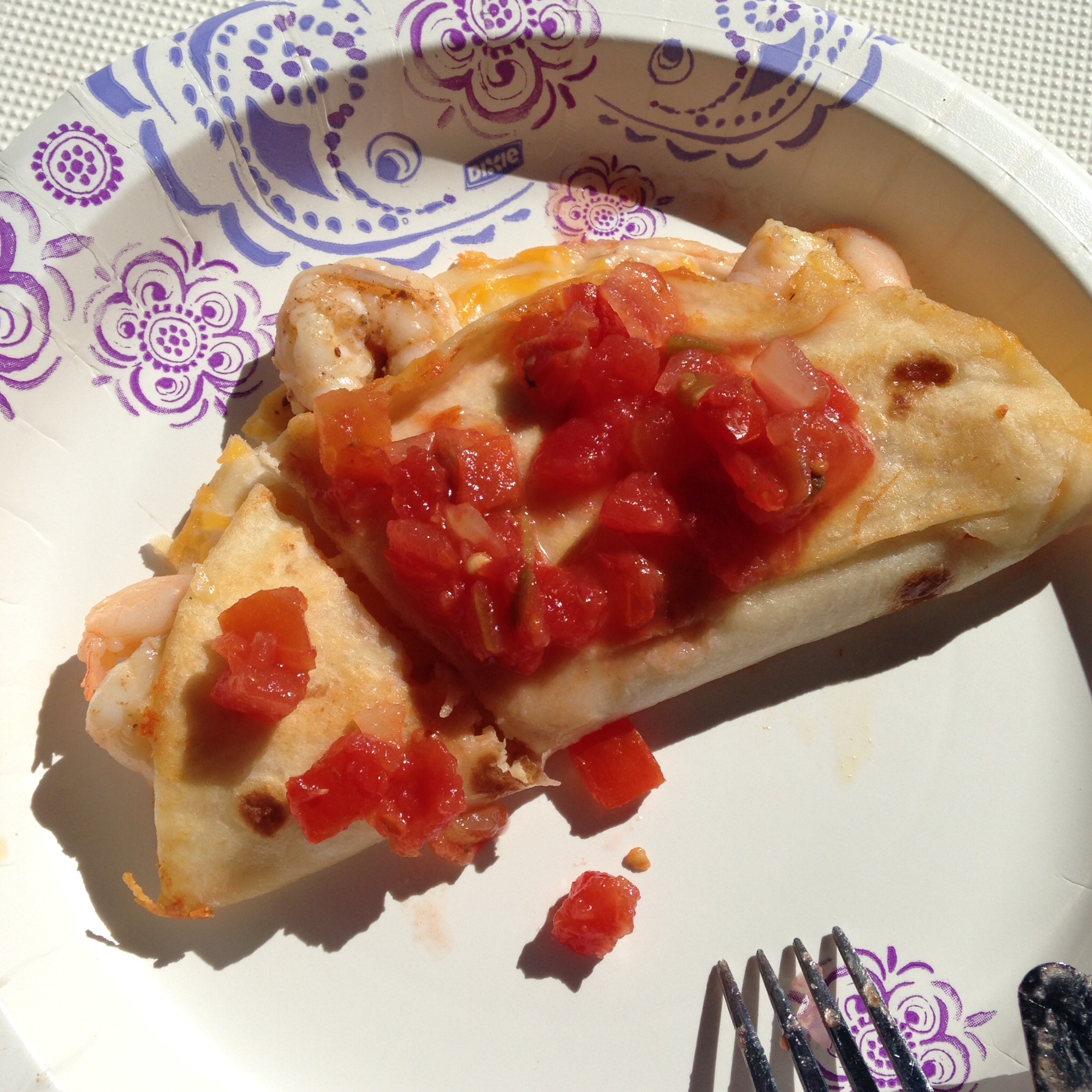 Shrimp quesadillas for lunch underway, served on our finest boat china!
