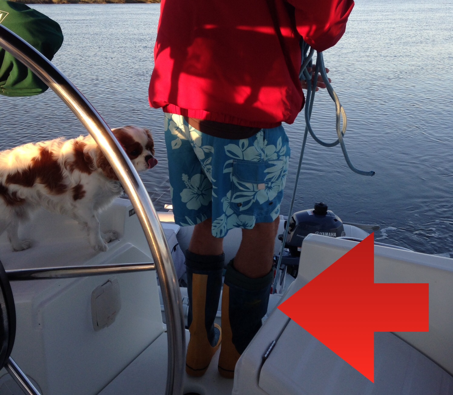 The captain had to put his guinea boots (sexy) on to do the puppy potty run … Shoreline in the marsh is either muddy or oyster shells.