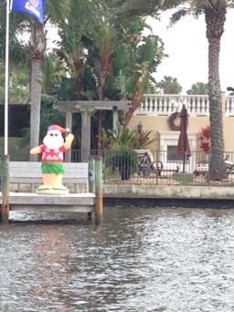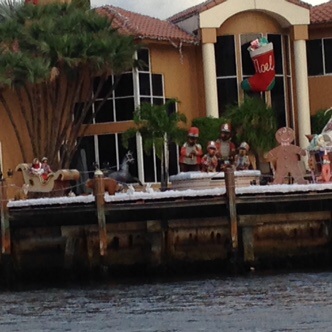 We did the first stop in Daytona Beach. Some of the power boats in the marina there still had there Christmas lights up, so we put ours back up 🙂