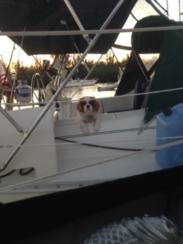 We had friends from Deltaville already on a mooring, so rafted with them. Caleb stared at us during cocktails on their boat.