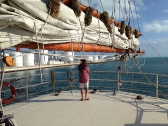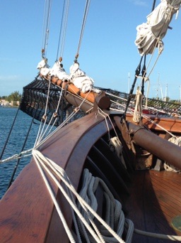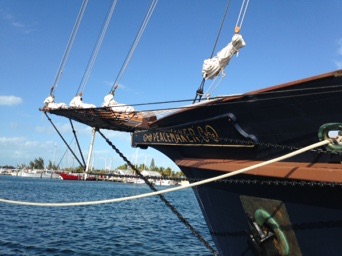 After being away from the marina for a week (doing the Key West Duval Krawl with our rowdy friends, more on that later), we returned to Dreamer at her current port in Stock Island Marina in Key West to find a cool 124′ triple masted tall sailing ship, s/v Peacemaker.