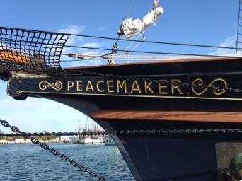 While it has been blowing hard out of the north for days now, keeping most in port, Peacemaker enjoyed a nice sail down the coast from Miami to Key West. To our delight, she was also open for free tours!