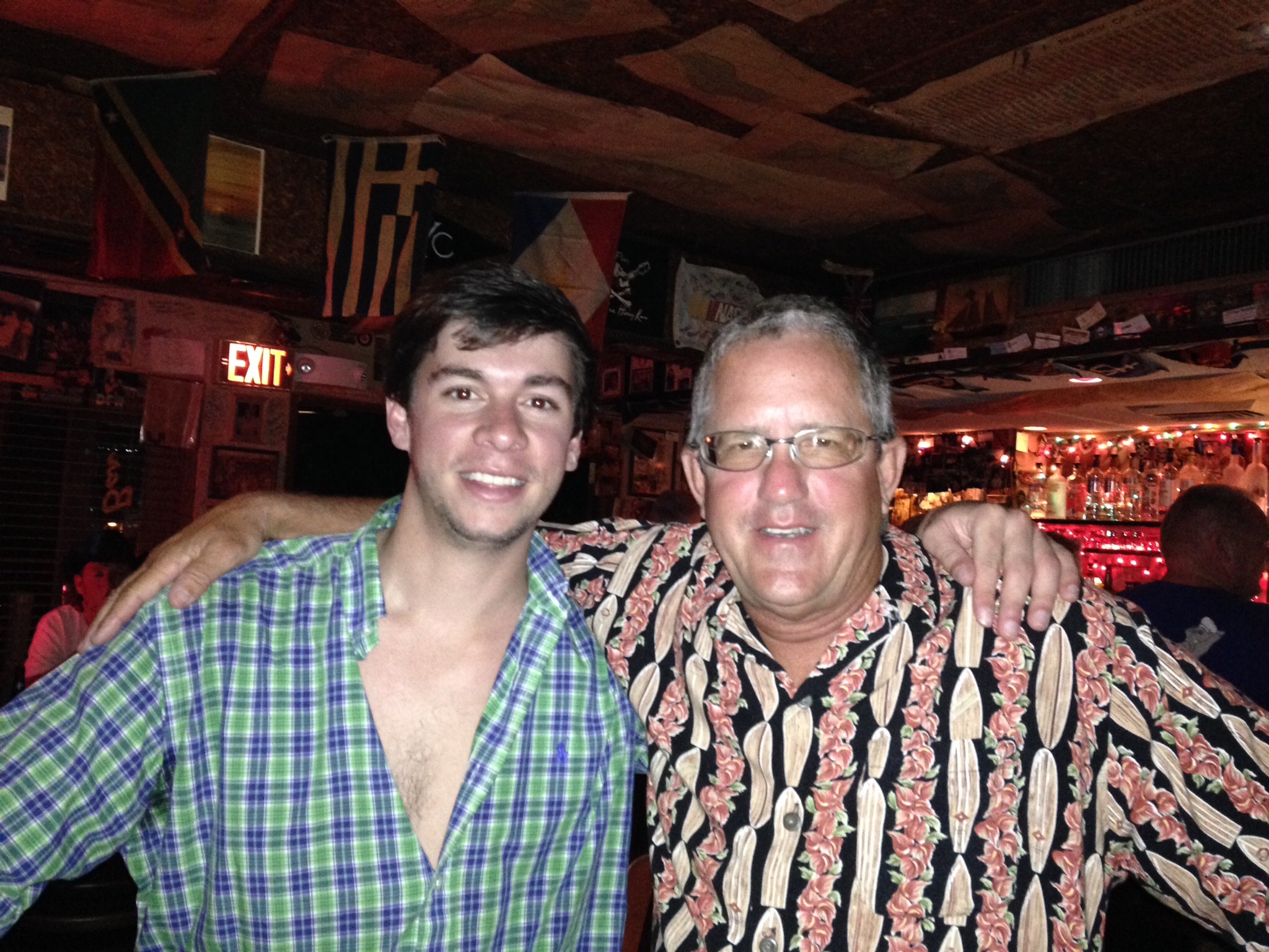 Hanging out in the Chart Room with Anthony D’Allessandro (aka “Waterboy”), where the bartender gave him free drinks after hearing his story of how he arrived in Key West from Blacksburg, VA (something to do with stops in Roanoke for dinner and drinks with Rick Patterson, snow storms, an all night party in Atlanta with a friend, plains, trains, automobiles, buses, bicycles, and boats). Glad you caught up with us, Anthony!  And, glad you made it back to school safe and sound 😎.
