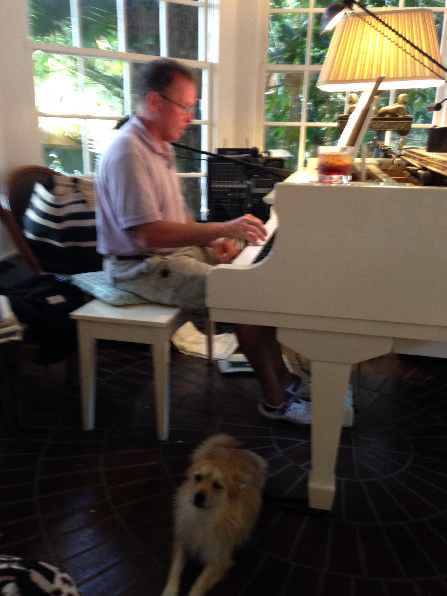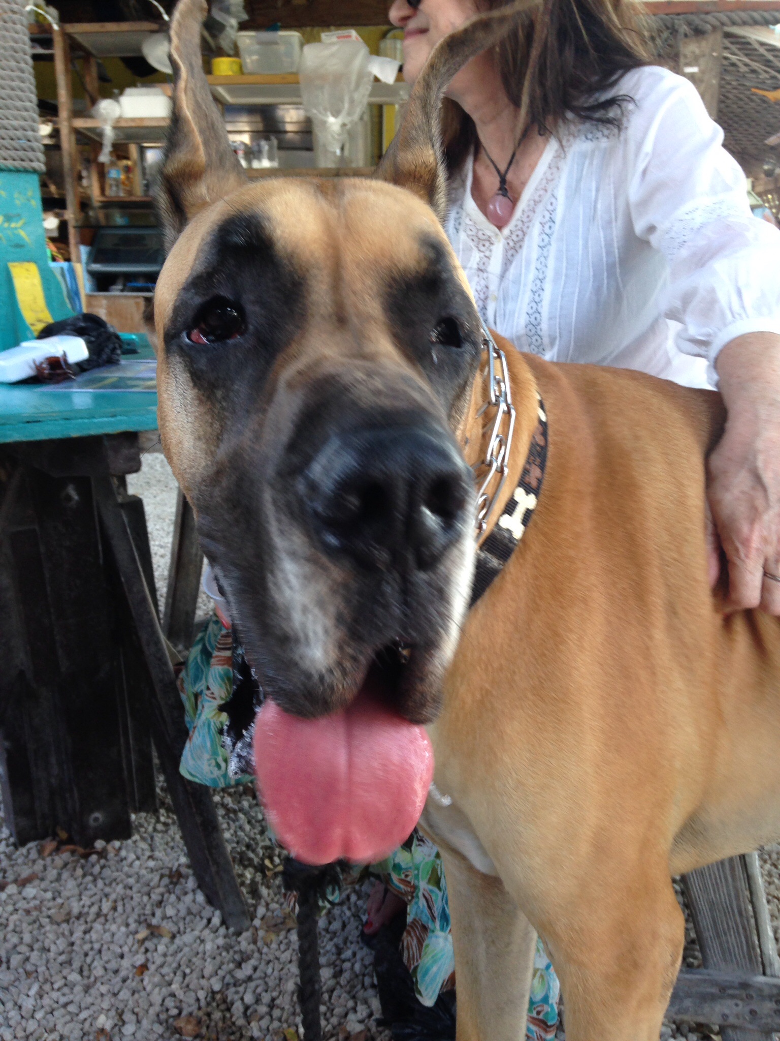 Yes, that is a dog inside a very nice hotel!  Love Key West for its dog friendliness. Even the big dogs squeeze in. We met this happy fellow at Schooners Wharf bar.