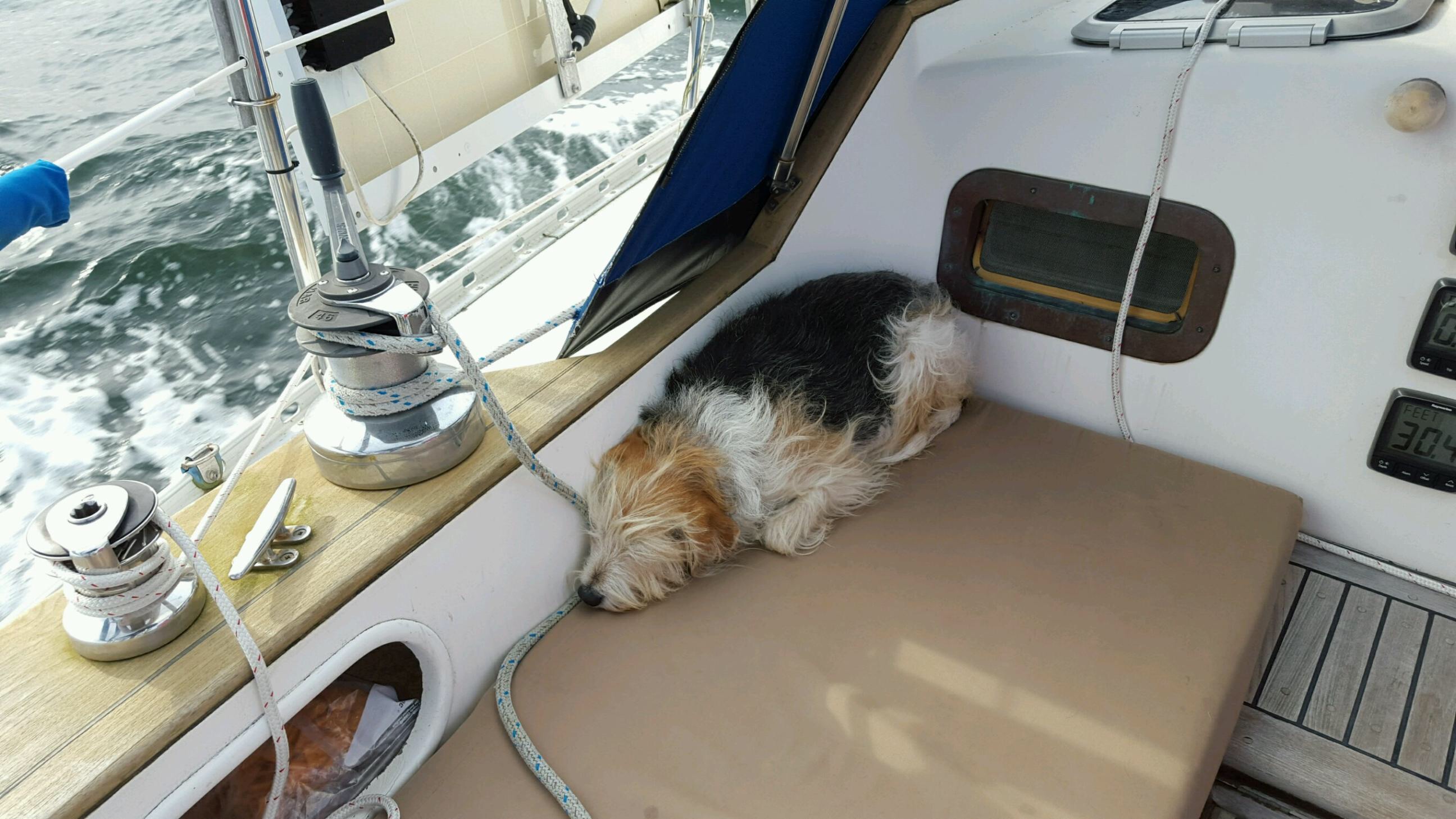 Since I was still a little nervous about being on boat with my bum knee, my crew sailed up on a foggy Thursday without me, and I joined them later by car.