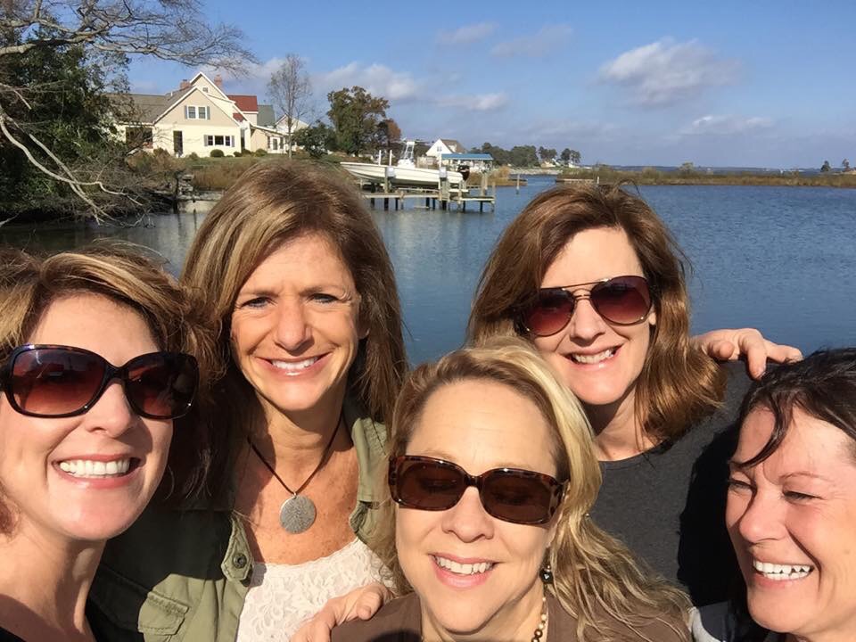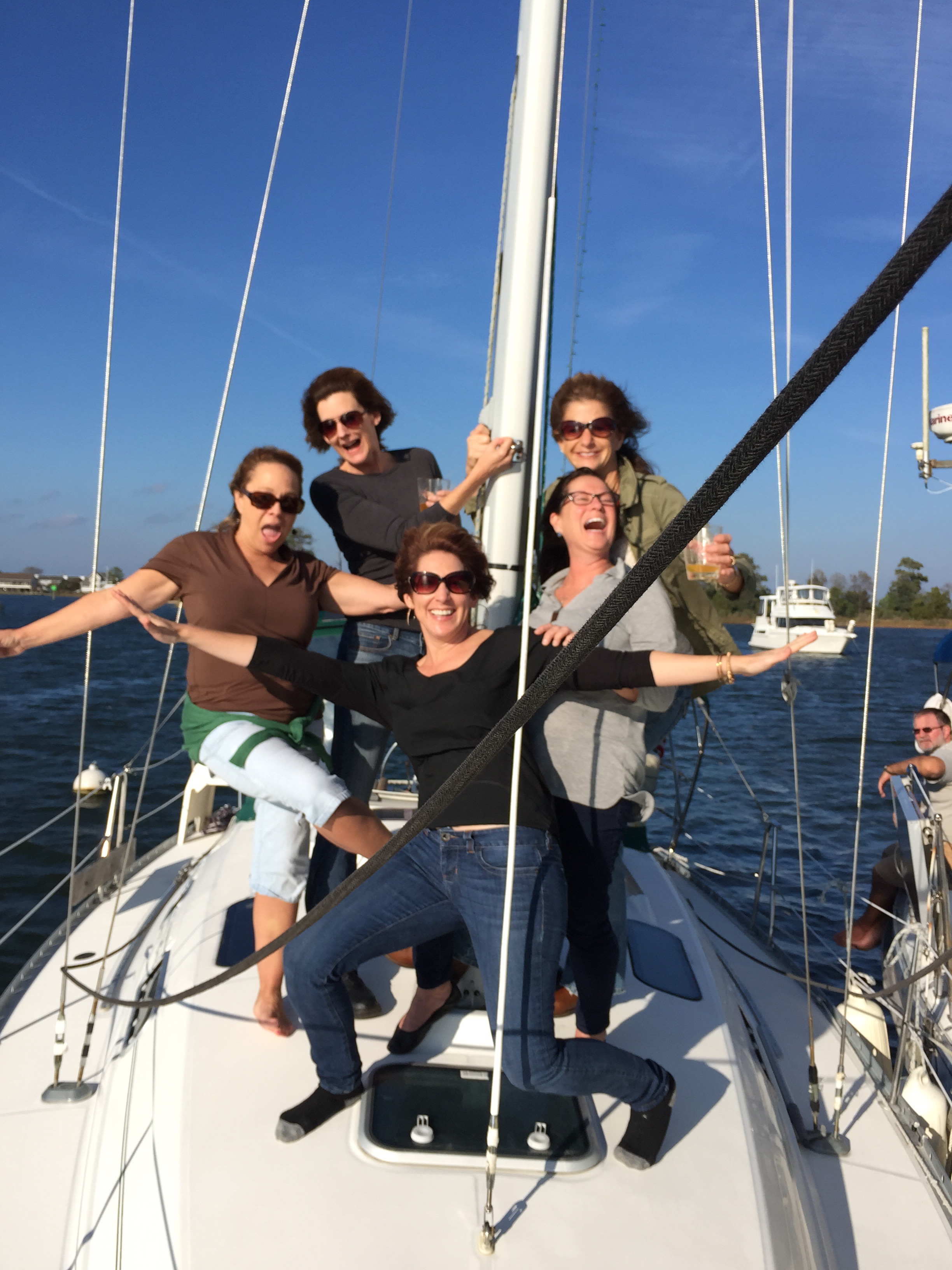The Oyster Chicks hanging out on the boat before heading back to shore for some tasty oysters.